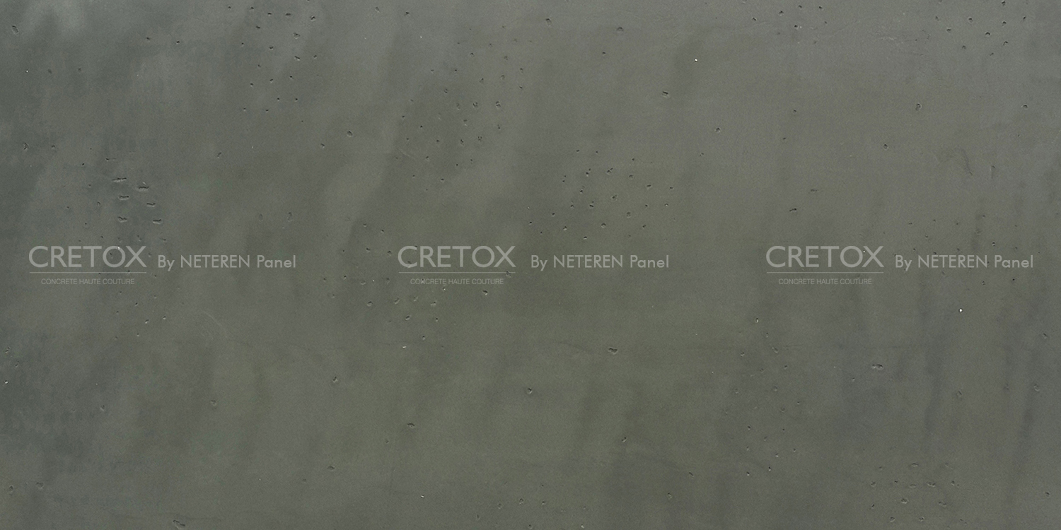 Beton harcının döküm sürecindeki hava koşullarına, kuruma esnasındaki reaksiyona bağlı olarak her bir CRETOX Beton Panel kendine özel bir renge sahiptir. Web sitemizde yer alan ürün görselimiz, genel renk tonunu ve deseni gösterir niteliktedir. Her bir panelimizden dünyada sadece bir adet bulunmaktadır. Uygulamada ise genel renk tonu olarak bir bütündür.