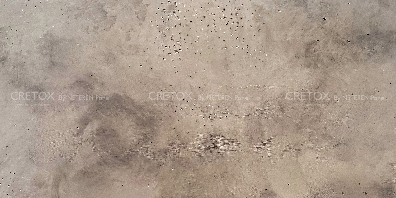 Beton harcının döküm sürecindeki hava koşullarına, kuruma esnasındaki reaksiyona bağlı olarak her bir CRETOX Beton Panel kendine özel bir renge sahiptir. Web sitemizde yer alan ürün görselimiz, genel renk tonunu ve deseni gösterir niteliktedir. Her bir panelimizden dünyada sadece bir adet bulunmaktadır. Uygulamada ise genel renk tonu olarak bir bütündür.